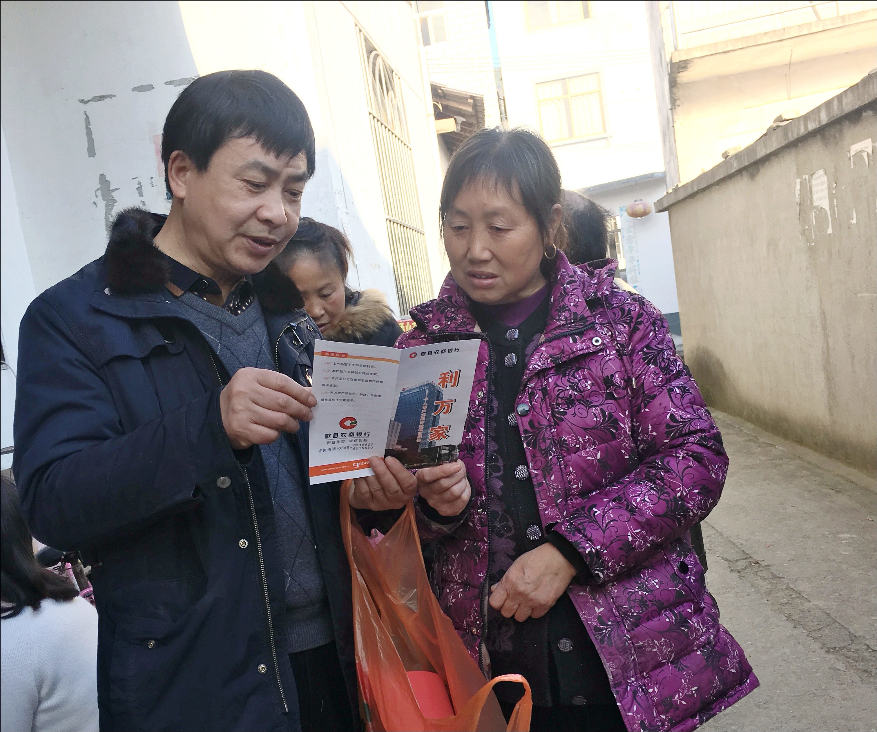 天气虽冷,但抵挡不了老同志火热的工作热情。顶着刺骨的寒风,老张又与新调来的老江一起,奔走在瀹潭村的乡间小道上,向来往的百姓介绍着歙县农商银行正在开展的旺季惠民活动,以及“薪管家”、“利万家”存款产品。短短几天时间,他们的宣传足迹又一次覆盖了坑口乡的大街小巷,他们那种执着、专注的精神着实令我们这些晚辈佩服,或许这就是“农金精神”的真谛吧。
