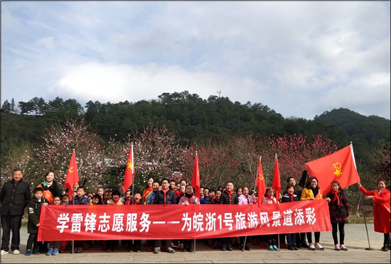 3月21日下午,雄村学校团支部与少先大队组织全体少先队员,在星星火炬队旗引领下,赴雄村景区参加“学雷锋志愿服务——为皖浙1号旅游风景道添彩”活动,受到景区领导、当地干群一致称赞。