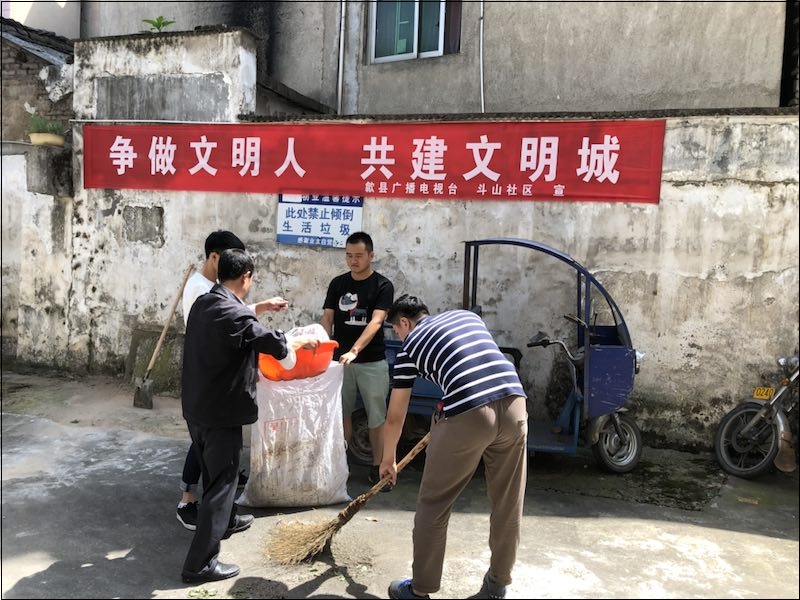 6月13日,歙县广电台党支部举行六月主题党日活动,组织十余名党员干部深入对口包保文明创城的老旧小区——鑫马苑小区,开展环境集中整治活动,用实际行动为创城工作增光添彩。