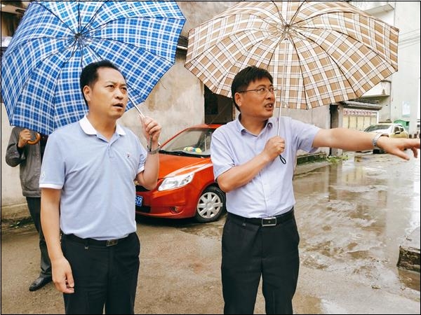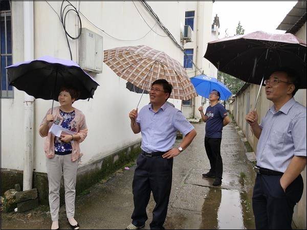 5月31日,副县长方英冒雨深入中和社区,实地调研包保区域内老旧小区环境整治工作。县文明办、相关包保责任单位、中和社区负责同志陪同调研。