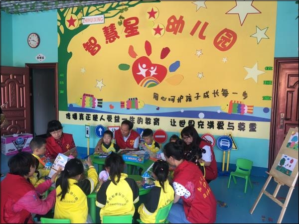 “我喜欢这个彩色油画棒、这个图画本好漂亮……”孩子们拿到崭新的学习用品,迫不及待地打开包装,拿在手上、一张张淳朴天真的脸上露出大大的笑容。随后,志愿者与孩子们与一起互动交流、玩粘土、搭积木、画画,讲童谣故事,大家齐心协力,共同创作出了许多好的作品,现场氛围十分欢乐。