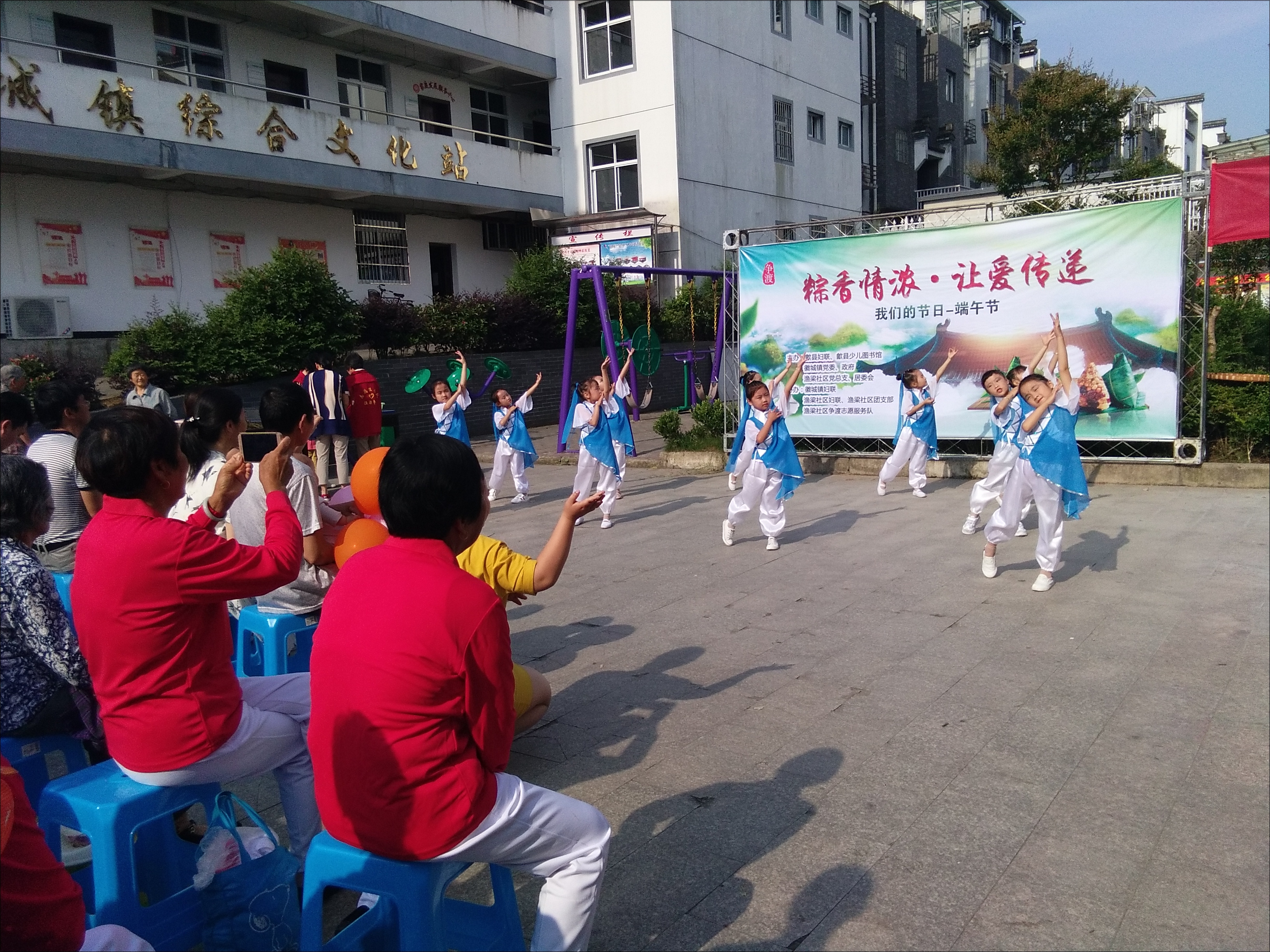 6月15日上午,徽城镇渔梁居民群众欢聚在志愿者服务广场,以粽叶传情、向留守儿童赠书、向计生特扶家庭送粽子及文艺演出等系列活动欢度“我们的节日·端午”。