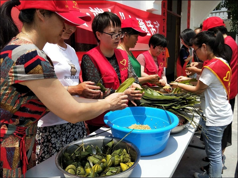 志愿者一早就准备好了包粽子的原材料,为老人包出一个个浓郁飘香的粽子,送上一颗颗孝敬关爱的心。随后,志愿者们有的帮助他们打扫卫生,有的与老人们拉家常,一时间,敬老院里其乐融融。“我们一辈子无儿无女,但是晚年却享受天伦之乐,我们现在住得好、吃得好、穿得好,逢年过节‘孩子们’就来陪我们一起过,真的非常高兴。”80岁的柯德志老人说。当天下午,志愿者们又带着浓浓的爱意先后走访慰问了2017年道德模范人物以及留守老人、留守妇女和留守儿童,为他们送去节日的祝福和政府的关怀。(溪头镇:江夏友)