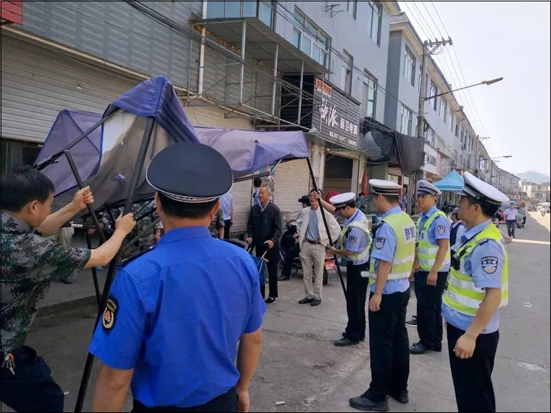 王村交警中队参与王村镇政府等部门在王村开展交通秩序整治。清理违法占道摊点、整治车辆乱停乱放。对长期占用道路资源的“僵尸车”联系车主督促及时进行拖拽清理。