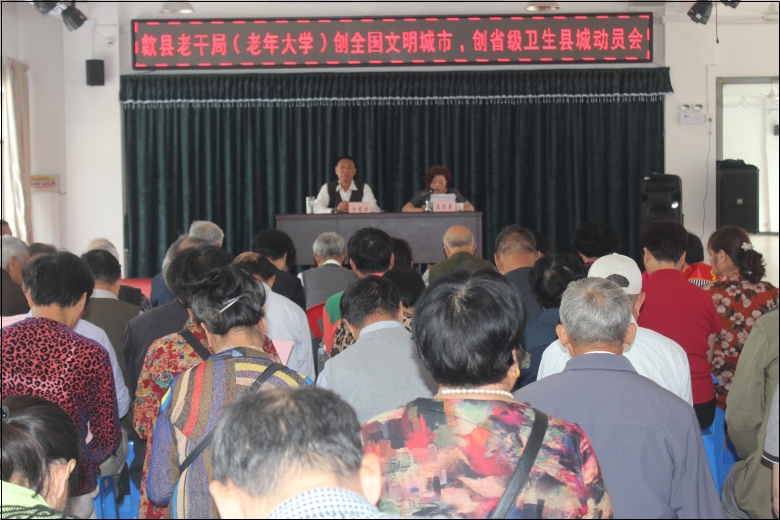 会议传达了全县创城、创卫动员会和县委书记李忠在县老年大学调研时所做的讲话精神,要求局机关的同志和老年大学全体师生,一要统一思想,提高认识。把思想统一到县委“双创”工作的决策部署上来;二要提升素质,坚定信心。在县委县政府的坚强领导下,从我做起,从现在做起,从身边的小事做起,积极参与到创建文明社区、文明校园、文明机关之中,争做文明市民和传播正能量的使者;三要示范引领,全员发动。老年大学各(临时)党支部和志愿服务团要主动参与“双创”的有关活动,党员和班干部主动带头,各班做好宣传发动,按照李忠书记的要求,“老年大学要争取做创建文明城市的示范样板”,为“双创”工作添砖加瓦。
