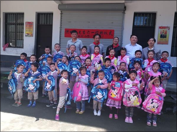 6月1日,璜田乡沙坦村的致富能手洪旺进先生放下手头的工作来到家乡的沙坦小学。今天,他给孩子们带来的礼物是每人一个价值百余元的健美书包。