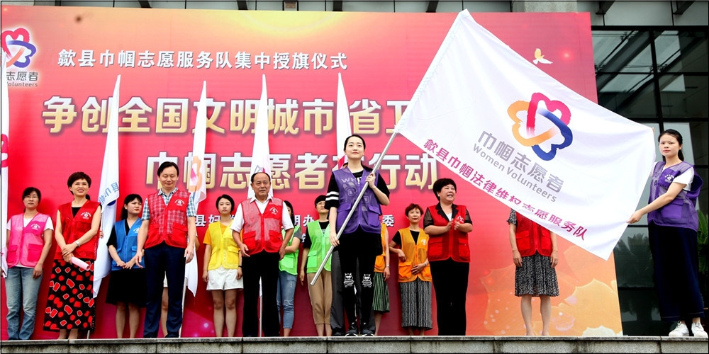 7月5日,歙县举办专业巾帼志愿者队伍成立授旗仪式,200名巾帼志愿者庄严承诺:践行志愿精神,传播先进文化,共创美好生活。