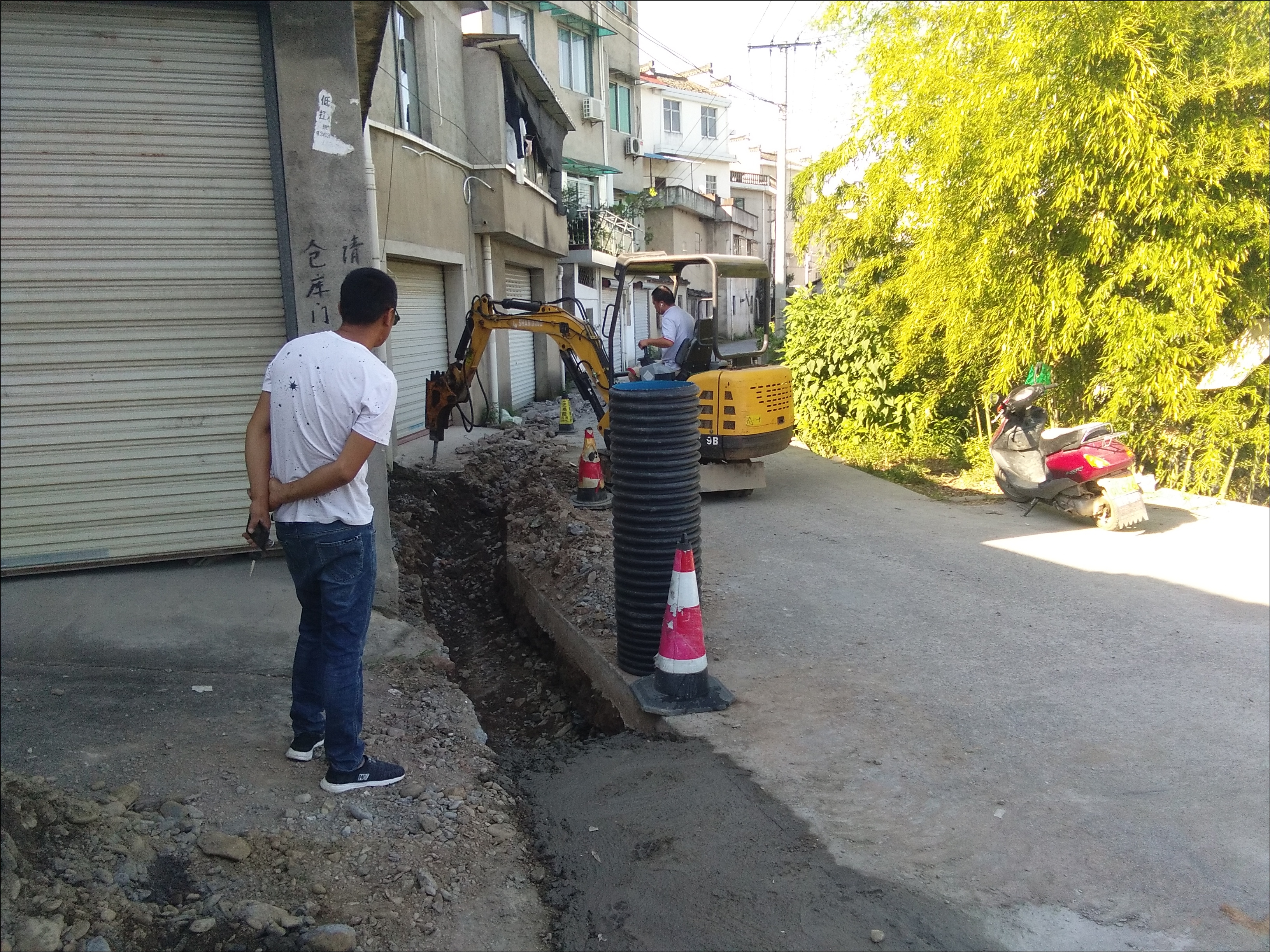 新州居民小区是90年代开发的居民自建小区,新州路20-36号路段排水沟总长近90米,排水沟渠因年代久远老化,导致污水排放不畅污水外溢及下雨天出现积水等问题,以至周边杂草丛生滋生蝇虫,对居民生活造成了严重影响。根据县创城督查组对社区创城工作进行督查反馈,6月份已进行评估的新州路20—36号排水沟堵塞需进行改造。社区召开两委会,落实整改创城督查,积极协调,向镇党委政府提交报告,投入资金,于近日组织人员对其进行改造,对原有的排水沟进行加宽加深,进一步改善附近居民的居住环境,让居民彻底摆脱出行难的烦恼。